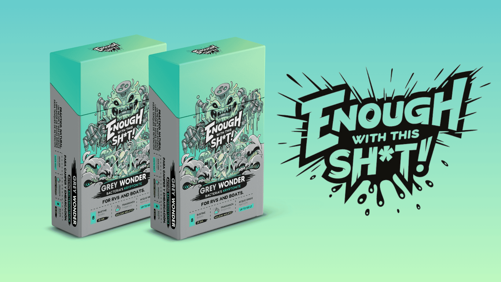 Pero no se detiene ahí. Grey Wonder es eficiente y resistente. Puede trabajar junto a otros productos de limpieza y detergentes en tu depósito, convirtiéndose en el mejor compañero de equipo. Simplemente vierte un sobre de polvo en tu fregadero, ducha o depósito, y observa cómo empieza a trabajar, tratando y desinfectando hasta 100 litros de aguas residuales.