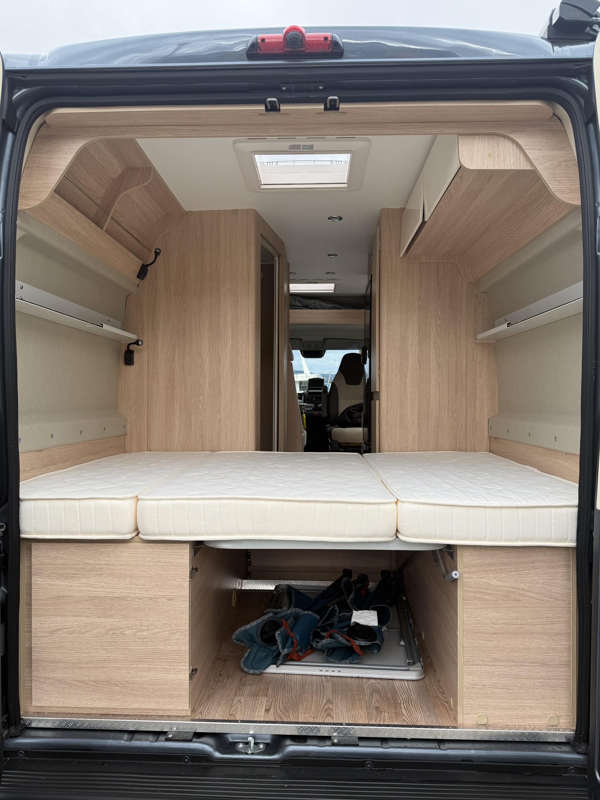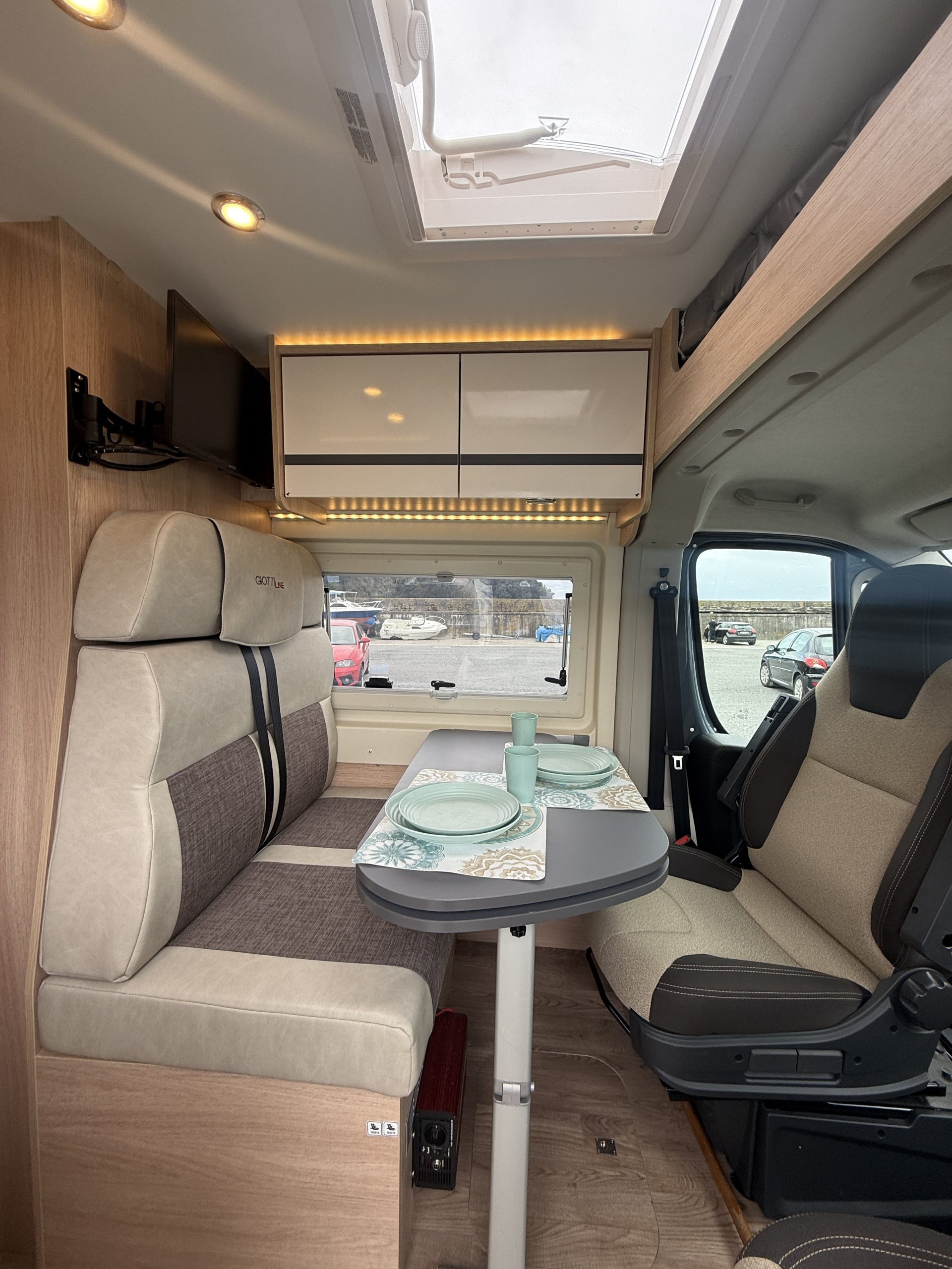 Esta camper en alquiler es una GiottiVan 60B (modelo 2025) con un motor 2.2 140 CV cuenta con 4 plazas para viajar y dormir. Una camper de 6 metros ideal para desplazarse a cualquier lugar (montaña , playa, ciudades).